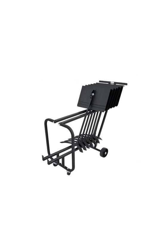 No more lugging music stands around. The Manhasset 1920 Short Music Stand Storage Cart holds up to 13 stands and makes racking and removing them a breeze. With a pivoting center axle which allows it to maneuver easily on all floor services this cart also features strong welded steel construction and a durable powder-coat finish. Dimensions: 39"H x 22"W x 58"L. Easily assembled in minutes. Black.