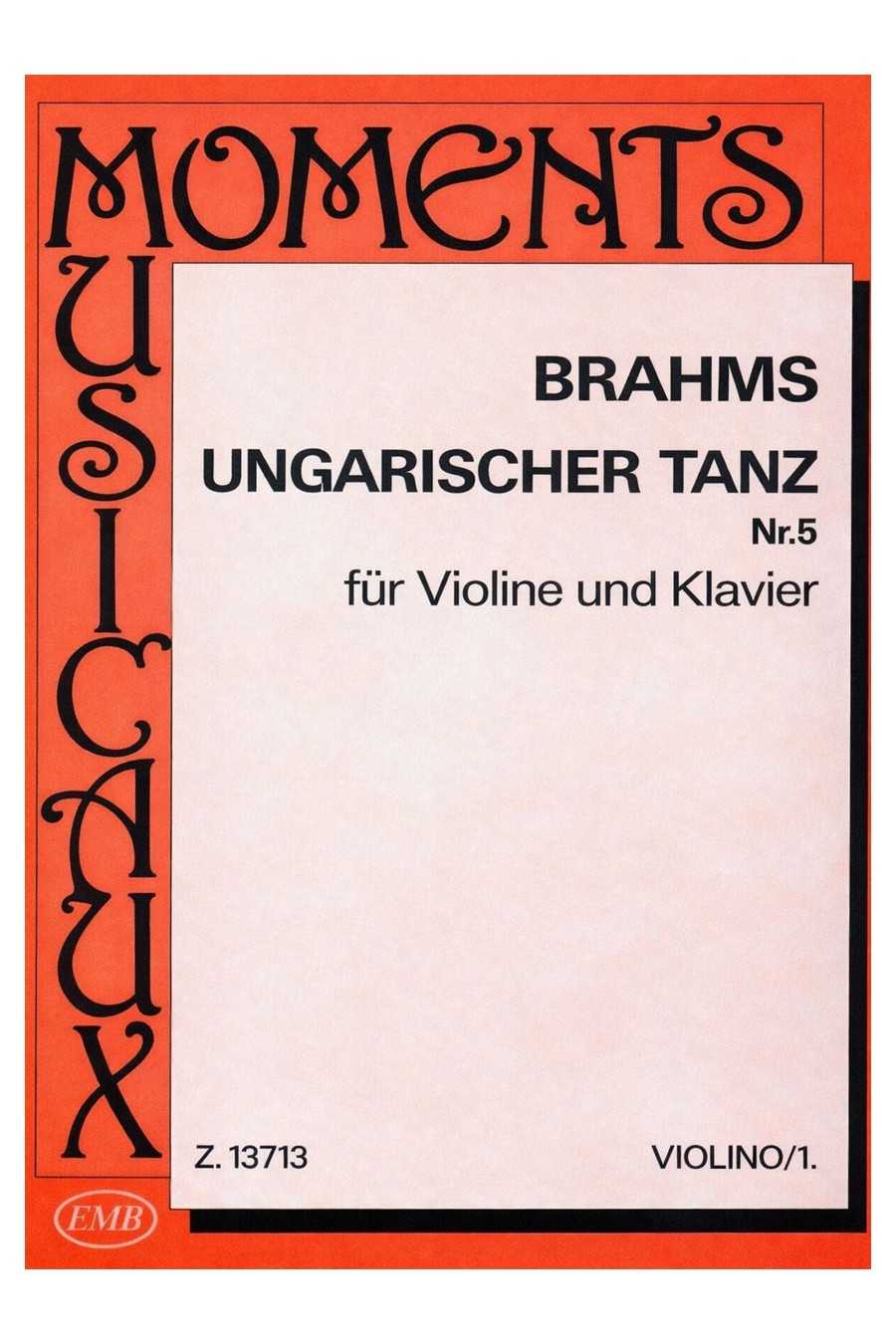 Brahms Hungarian Dances Nos. 1–5 for Violin and Piano by Johannes Brahms is presented in a vibrant and idiomatic arrangement for violin and piano published by Editio Musica Budapest; drawn from Brahms’s famous Hungarian Dances, this collection captures the fiery spirit, rhythmic flexibility, and improvisatory flair of Hungarian folk music, transforming orchestral showpieces into compelling chamber works that invite expressive freedom, dramatic contrast, and close musical dialogue between violin and piano.