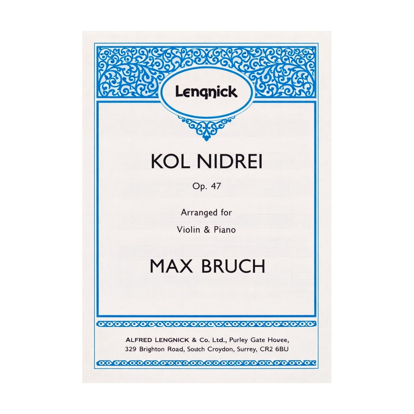 Bruch: Kol Nidrei Op. 47 for Violin and Piano by Max Bruch, published by Lengnick, presents one of Bruch’s most profound and deeply moving compositions in a sensitive arrangement for violin and piano; originally written for cello and orchestra, Kol Nidrei draws on ancient Jewish liturgical melodies and unfolds as an expansive, soulful meditation, allowing the violin to assume a deeply vocal role—lamenting, consoling, and reflecting with quiet intensity and spiritual weight.