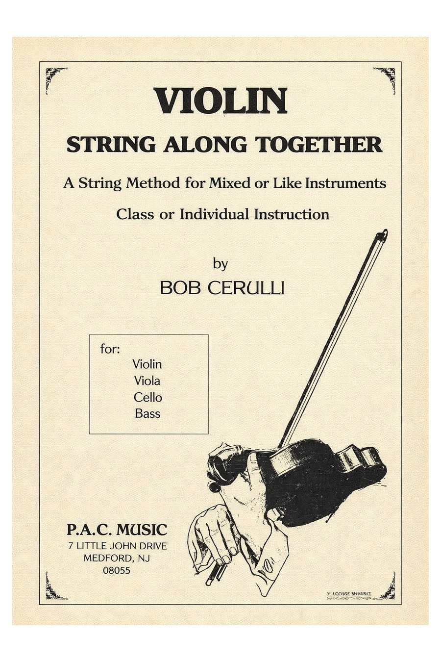String Along Together for Violin by Bob Cerulli, published by P.A.C Music, is a practical and inclusive string method designed to bring students together through shared music-making; equally effective for mixed or like-instrument classes as well as individual instruction, the book emphasizes rhythmic unity, ensemble awareness, and musical confidence, helping young violinists learn not only how to play correctly, but how to listen, blend, and perform as part of a group.