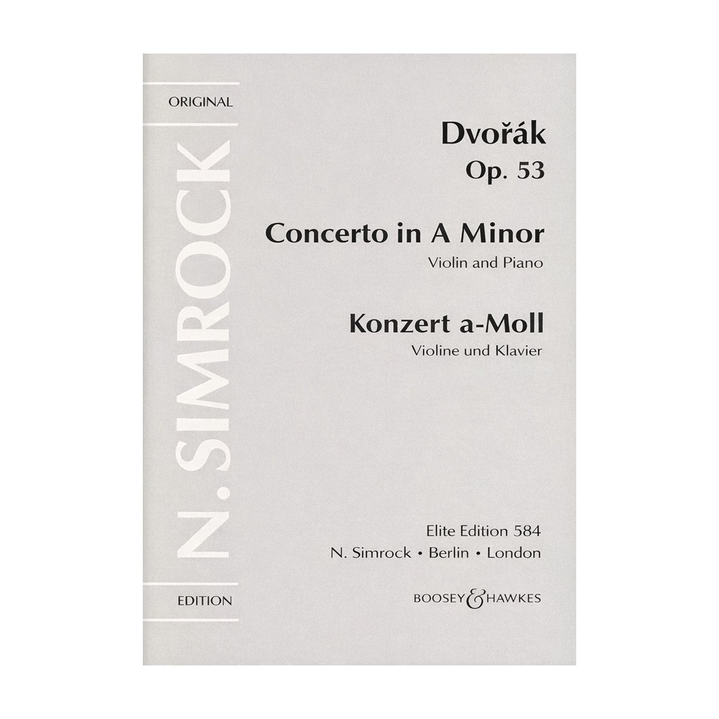 Fiery lyricism and Bohemian vitality come together in Dvořák: Violin Concerto in A minor Op. 53 for Violin & Piano by Antonín Dvořák, published by N. Simrock. Composed between 1879–1880 and dedicated to the great violinist Joseph Joachim, this concerto stands as one of the most compelling Romantic works in the violin repertoire.