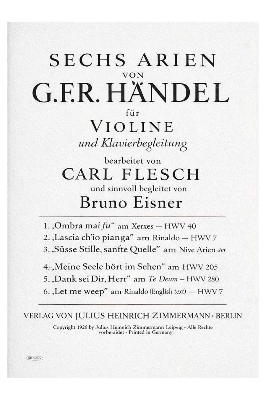 A serene violin arrangement of “He Shall Feed His Flock” from George Frideric Handel’s Messiah, transcribed by Carl Flesch with piano by Bruno Eisner. Published by Ries & Erler, it is a graceful and devotional recital piece.