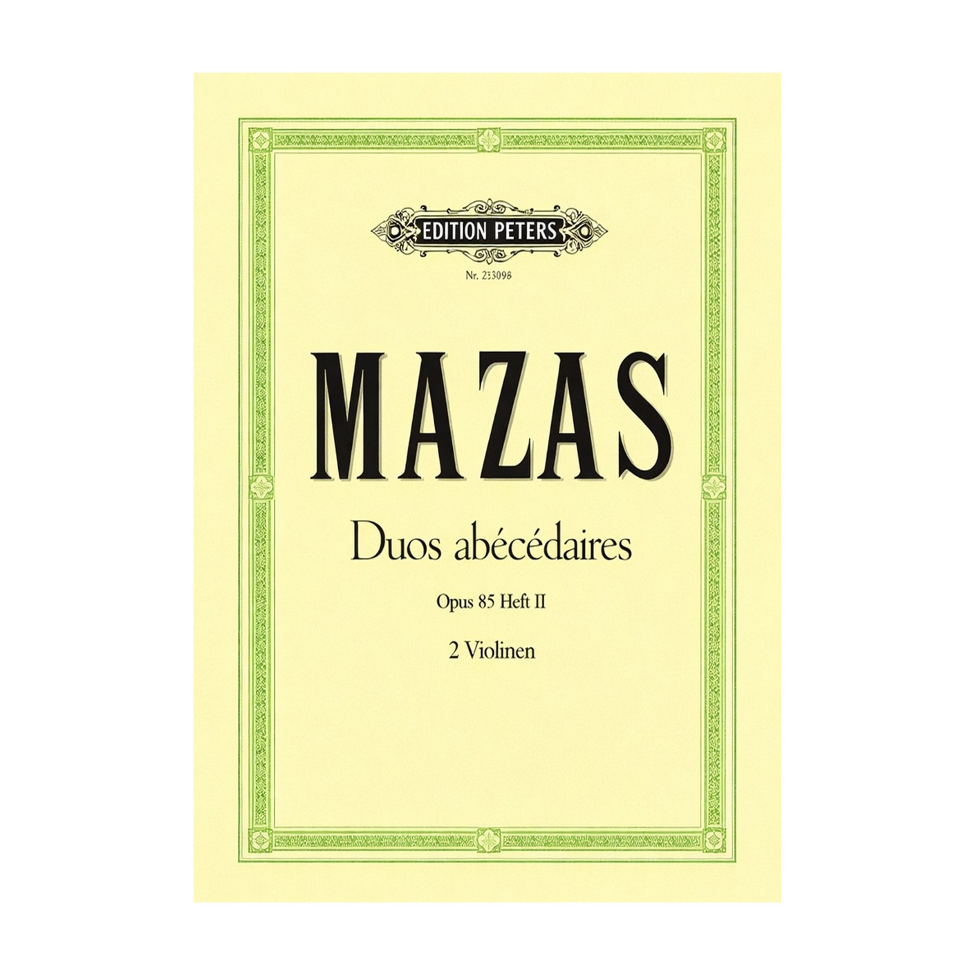 Mazas’ Duos Abécédaires Op. 85 Volume 2 (Peters) offers twenty engaging duets for two violins—perfect for building ensemble skills and musicality in students.