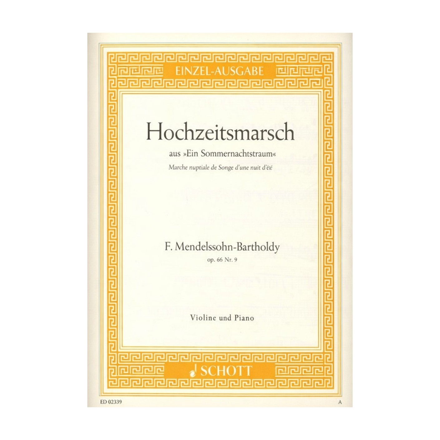 Mendelssohn’s Wedding March (Op. 61, Schott) delivers festive brilliance in a violin arrangement—perfect for ceremonies, celebrations, or recital performances.