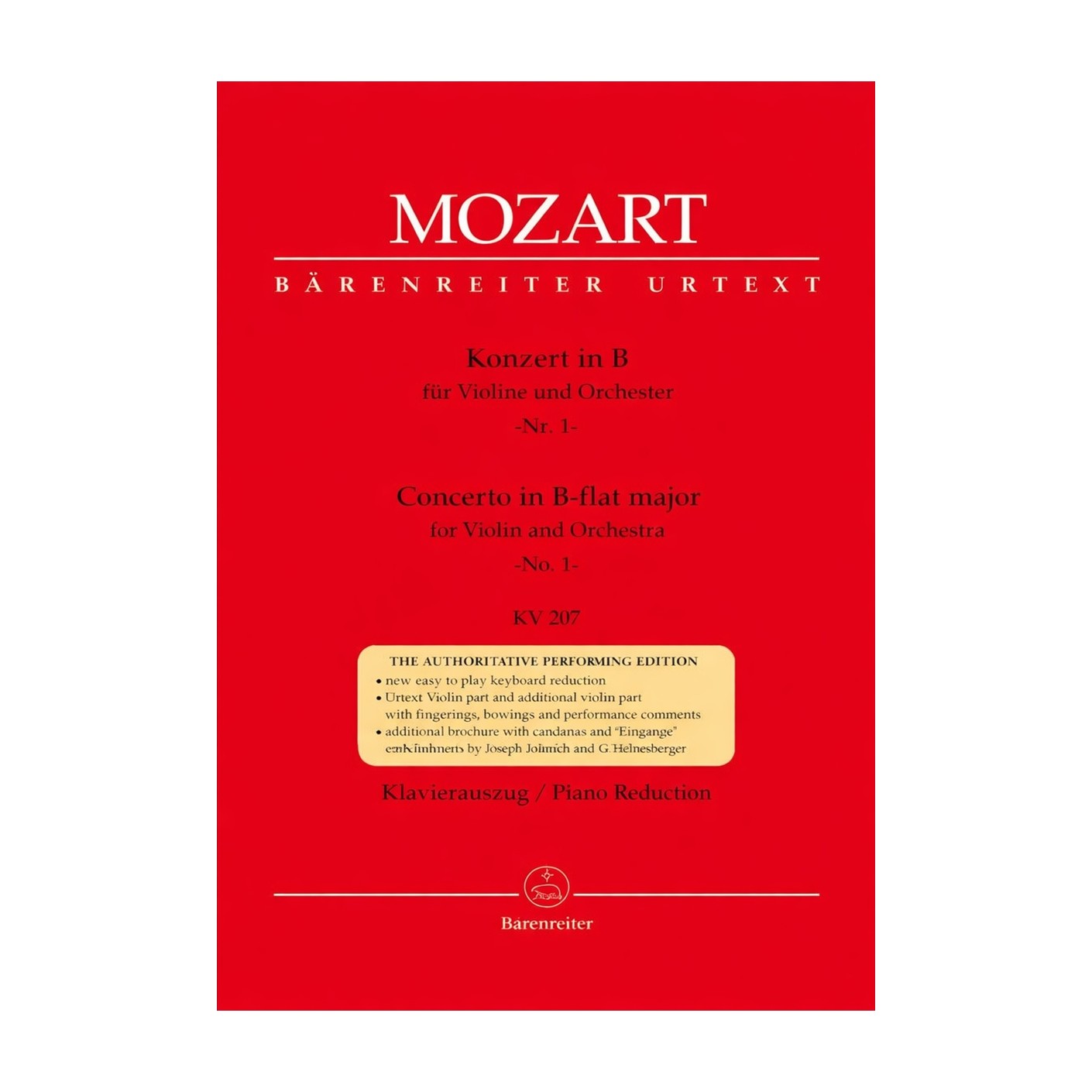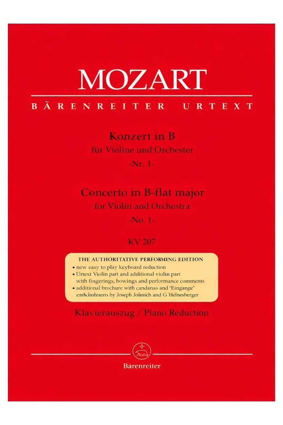 Mozart Concerto No 1 In B Flat Major K207 For Violin (Barenreiter)