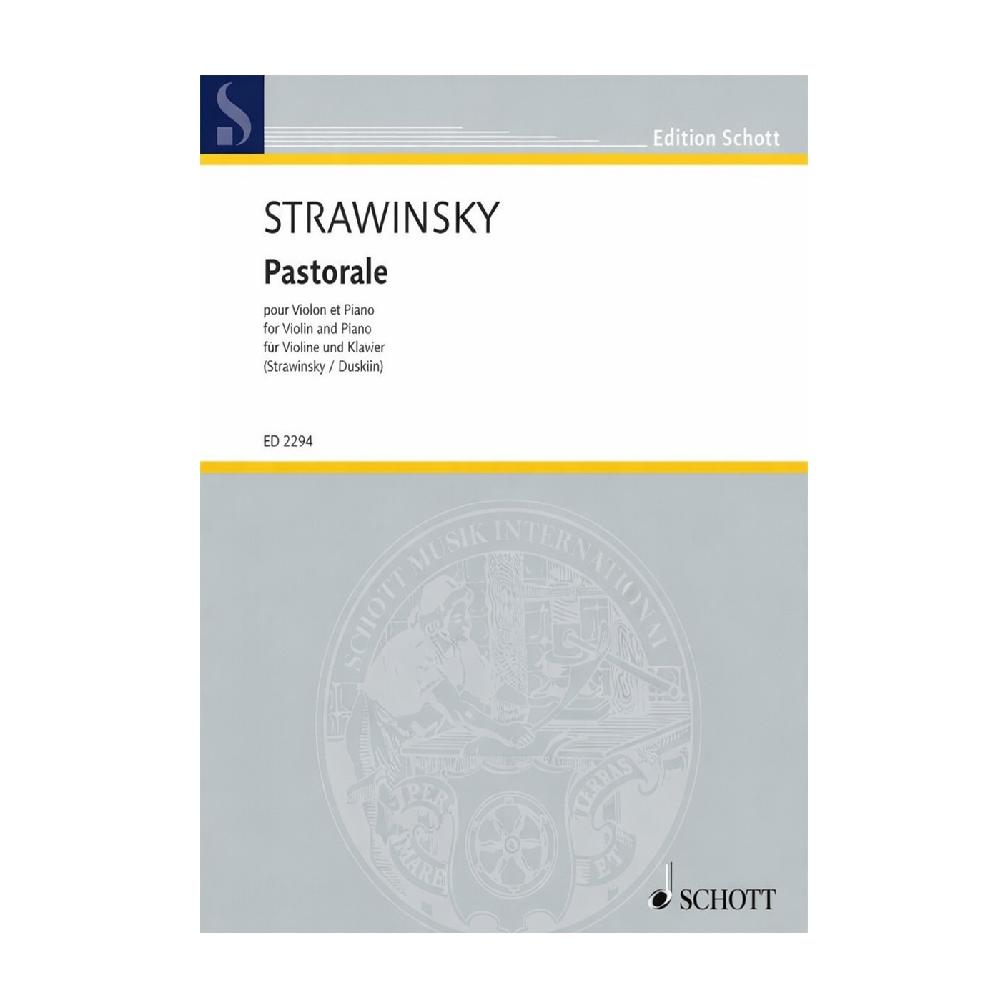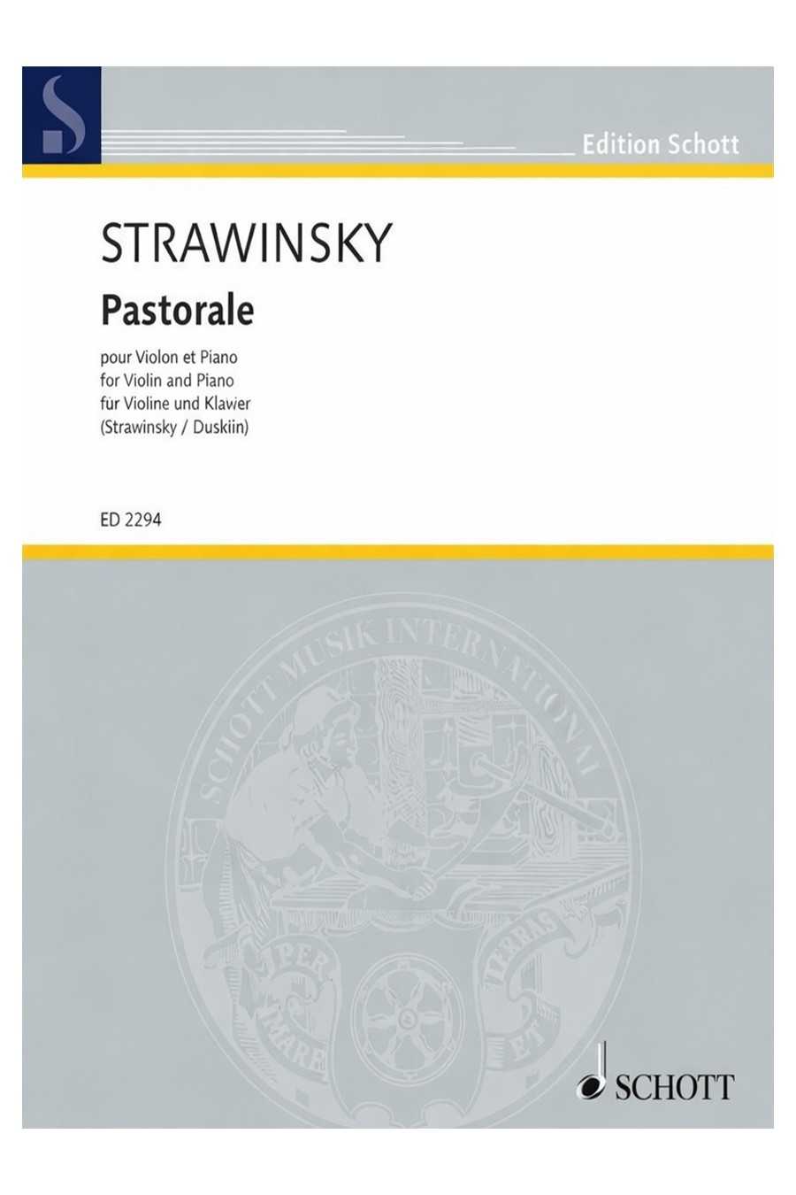 Stravinsky’s “Pastorale for Violin and Piano” (Schott) is a lyrical, impressionistic miniature for intermediate and advanced violinists, with editorial support for performance and study.