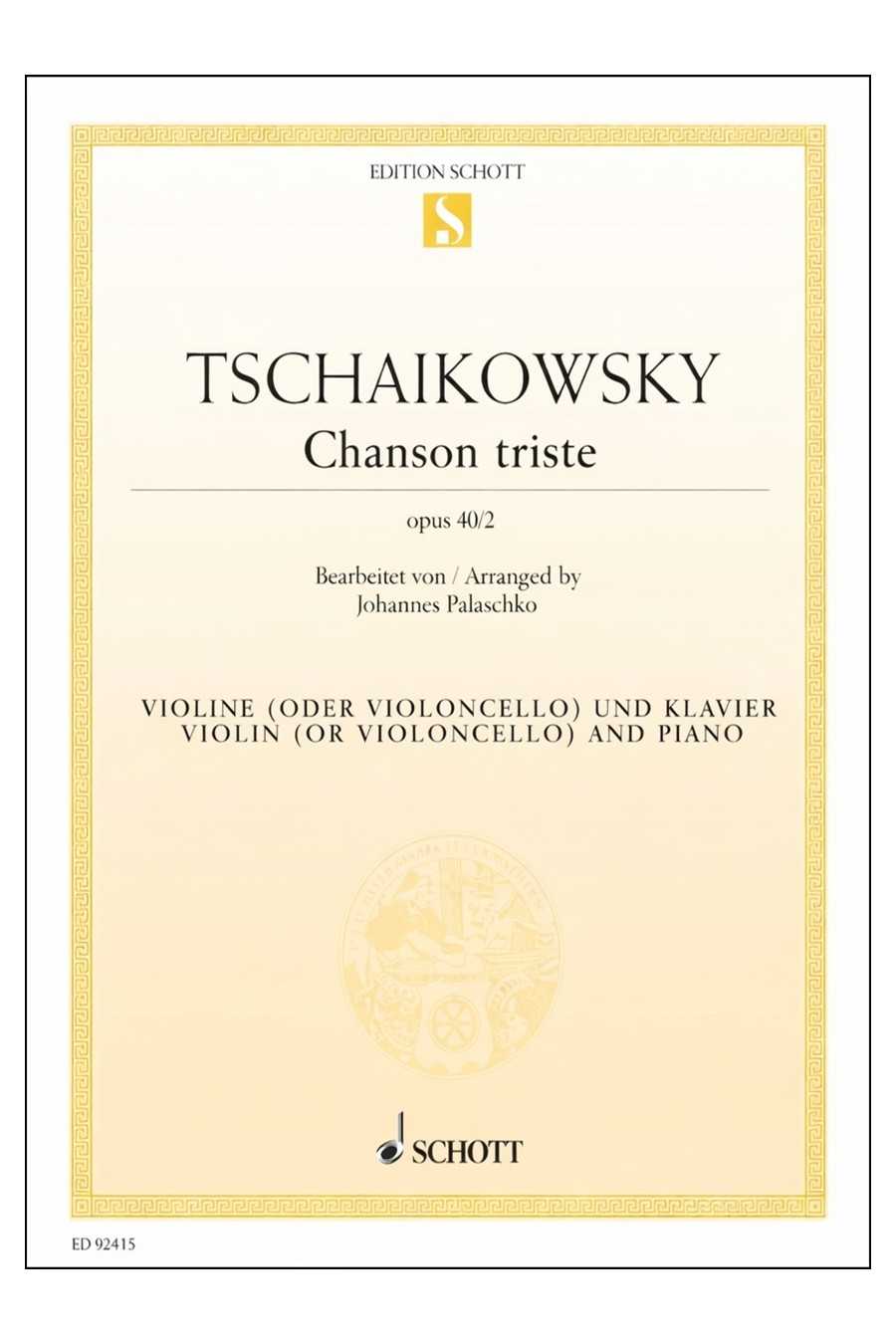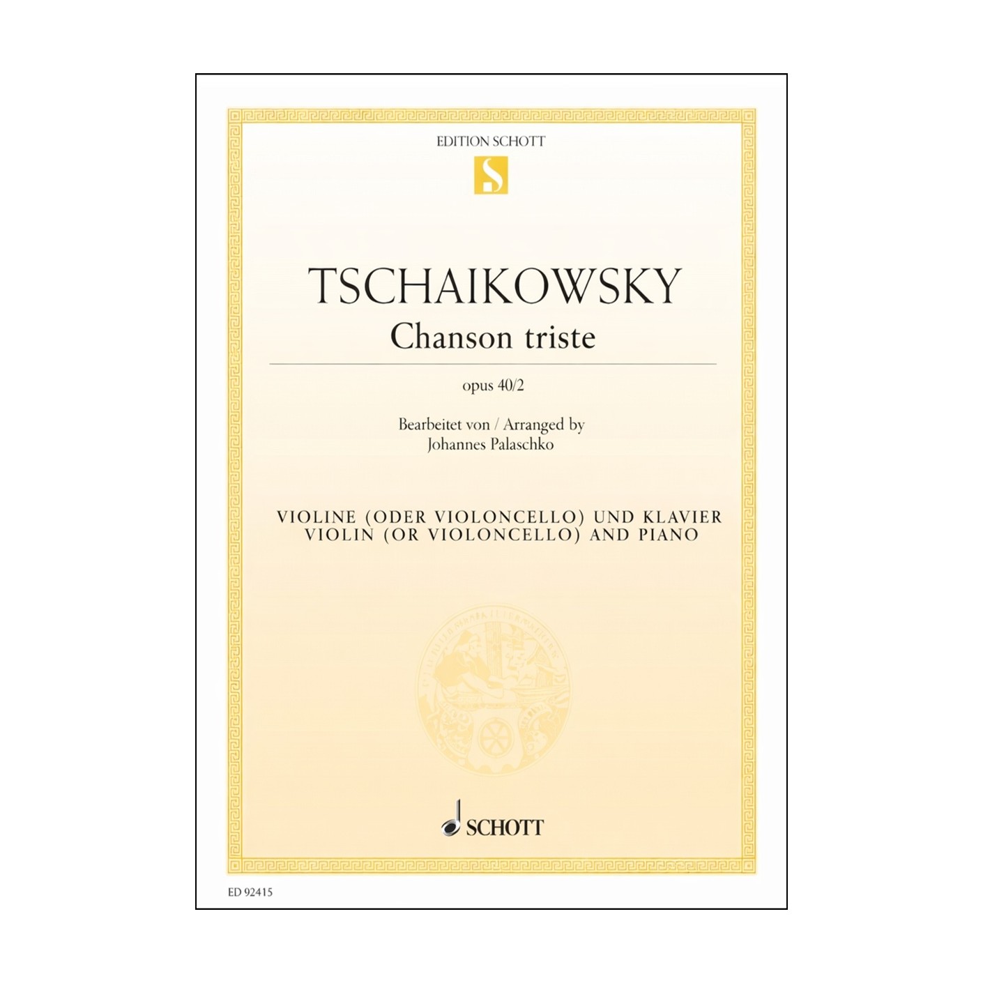 Tchaikovsky, Andante Cantabile arr Kreisler Violin/Piano (Schott)