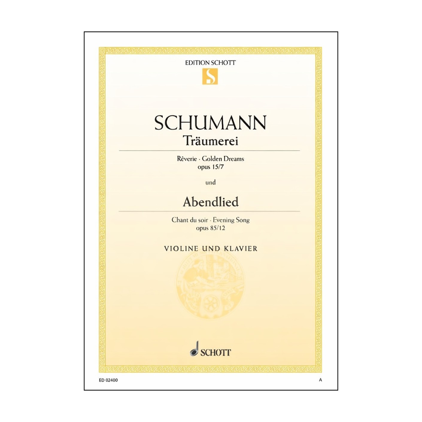 Traumerei & Abendlied for Violin and Piano by Schumann (Schott)