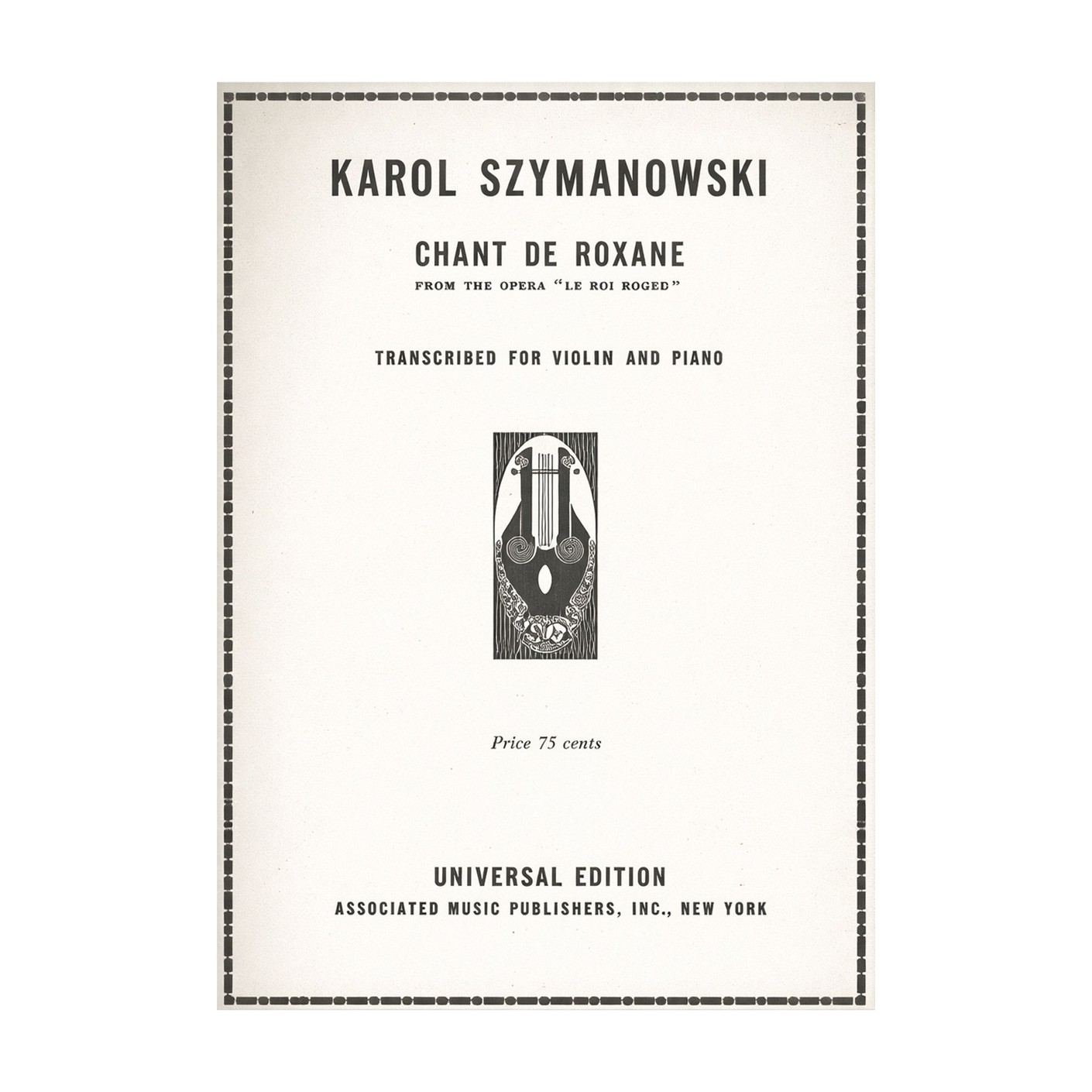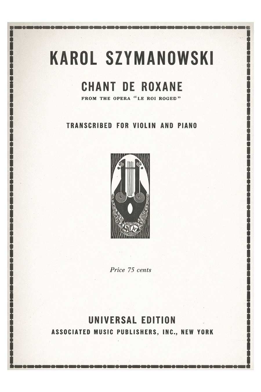 Bring Szymanowski’s exotic lyricism to your repertoire with “Chant de Roxane for Violin” (UE), a dramatic and colorful showpiece adapted from the opera “King Roger.”
