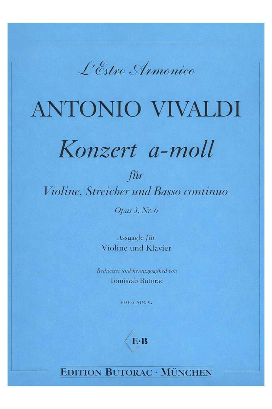 Vivaldi Opus 3 No 6 Concerto In A Minor For Violin, Strings And Bass. Edition For Violin And Piano (EBM)