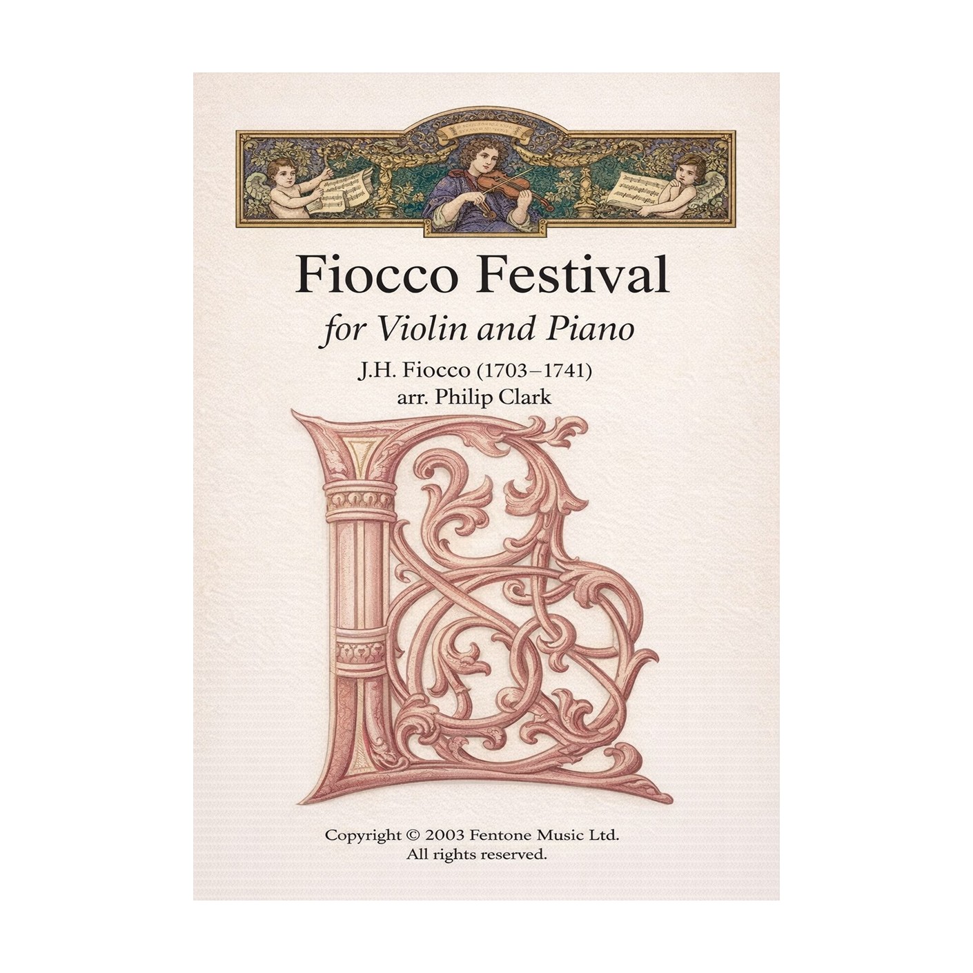 A lively Baroque collection by Joseph-Hector Fiocco, Fiocco Festival features eight characterful movements arranged for violin and piano by Phillip Clark. Published by Latham, it offers vibrant dance rhythms and elegant contrasts ideal for recital performance.